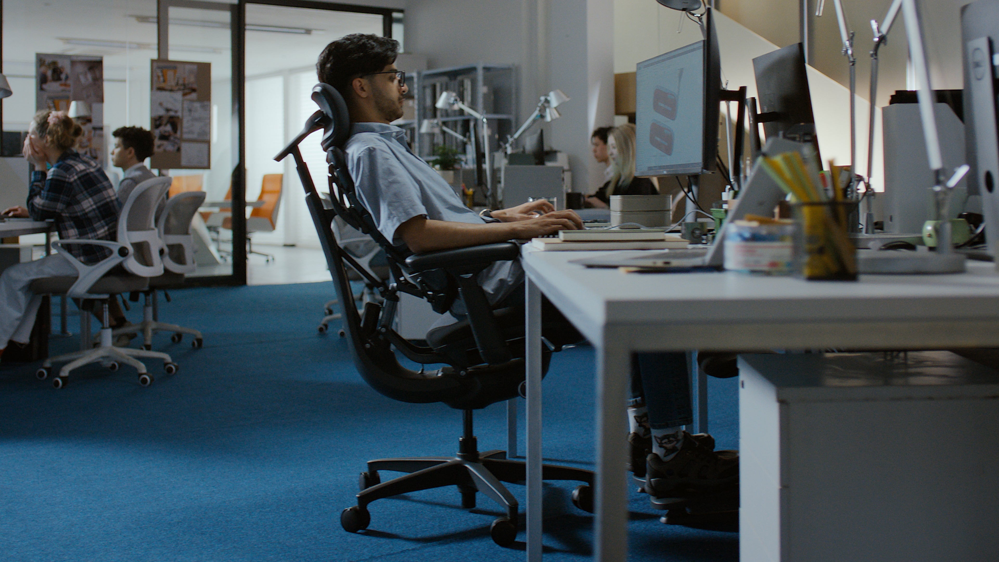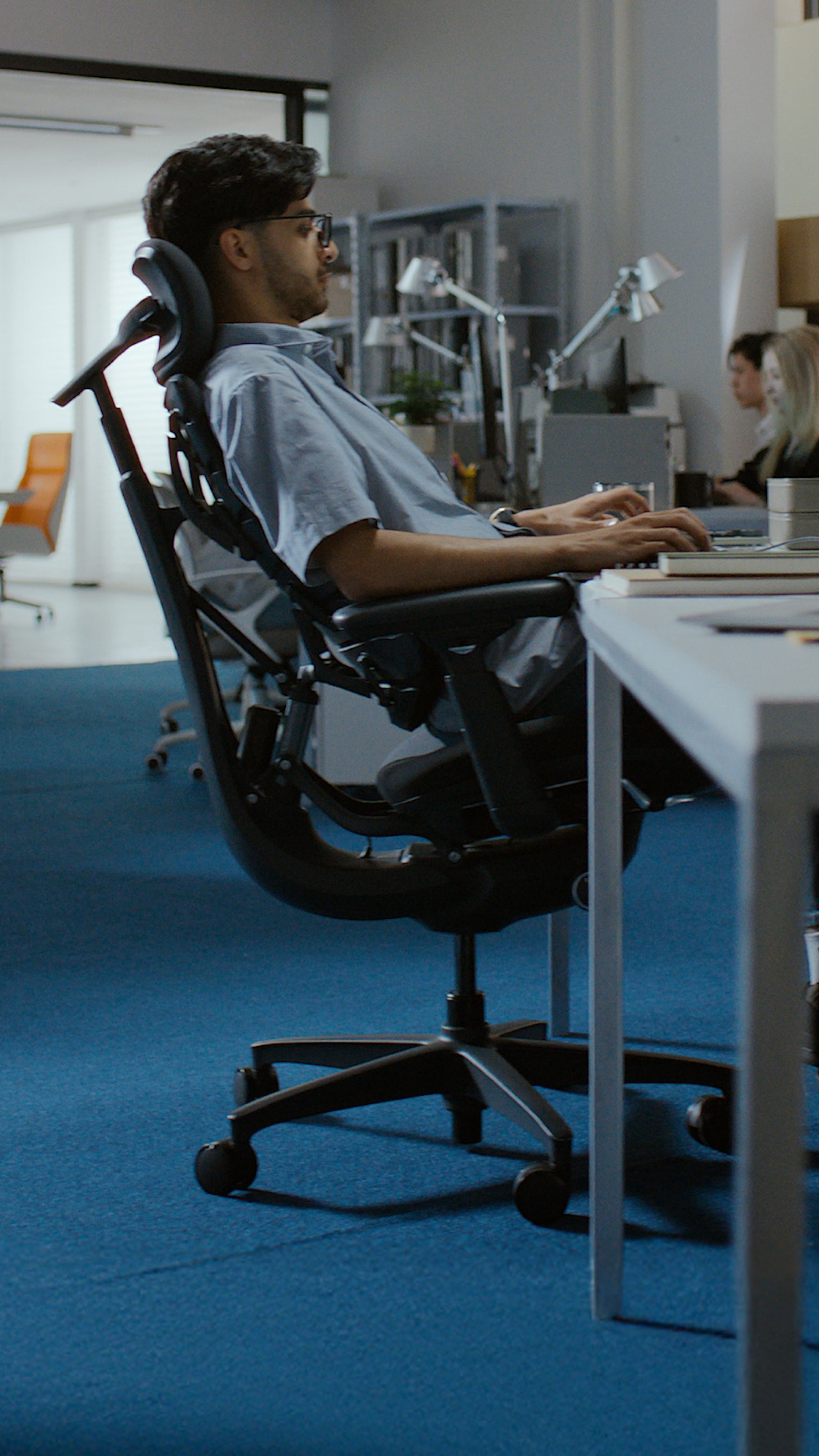 Ghế công thái học thông minh đầu tiên trên thế giới. Hỗ trợ động, uốn theo đường cong cơ thể bạn.